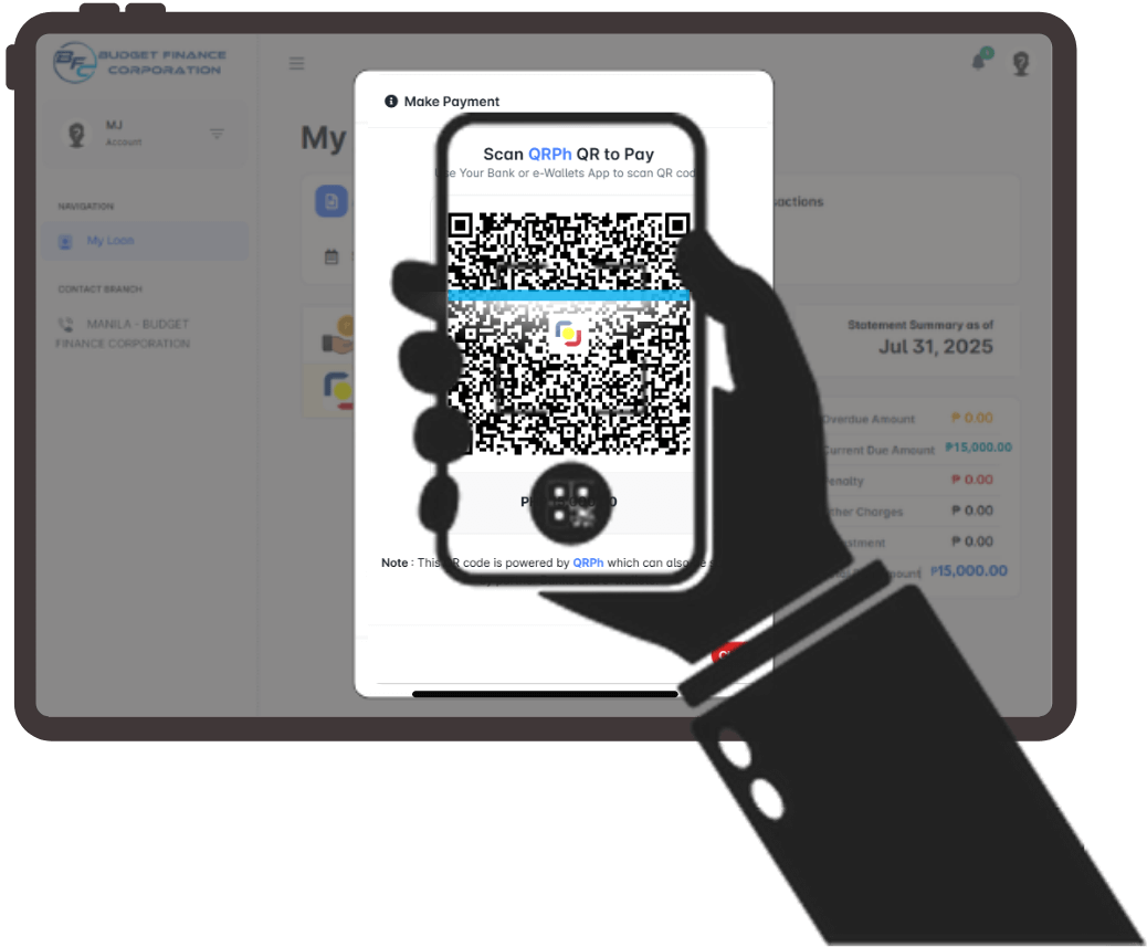 With QR Ph now available at Budget Finance, settling your monthly dues has never been easier. Enjoy fast transactions, zero fees, and peace of mind knowing your payments are secure and properly recorded.