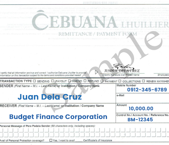 Pay your loan through CEBUANA LHUILLIER. Simply fill-in their Bills Payment form as in the example: